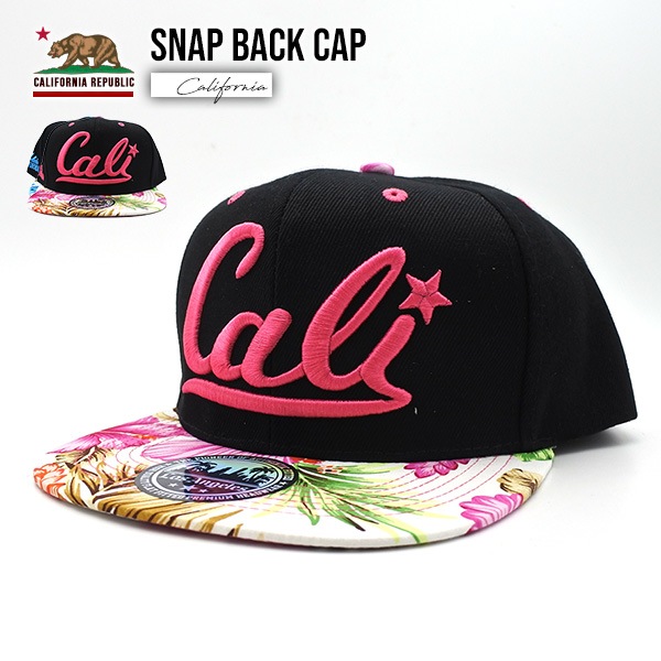 キャップ メンズ レディース #75 ボタニカル柄 CALI ロゴ 刺繍 帽子 ブラック ピンク CALIFORNIA カリフォル...