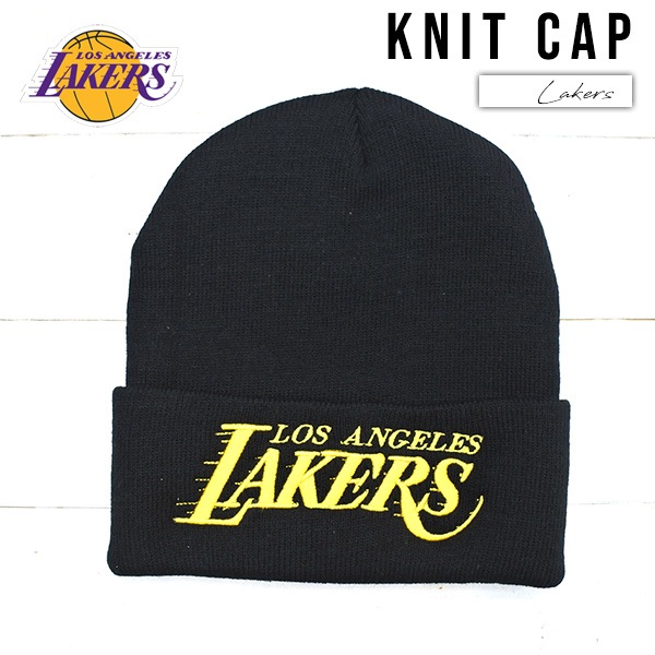 レイカーズ ニット帽 ブラック NBA LOS ANGELES LAKERS ロサンゼルス ニットキャップ 帽子 ニット グッズ ...
