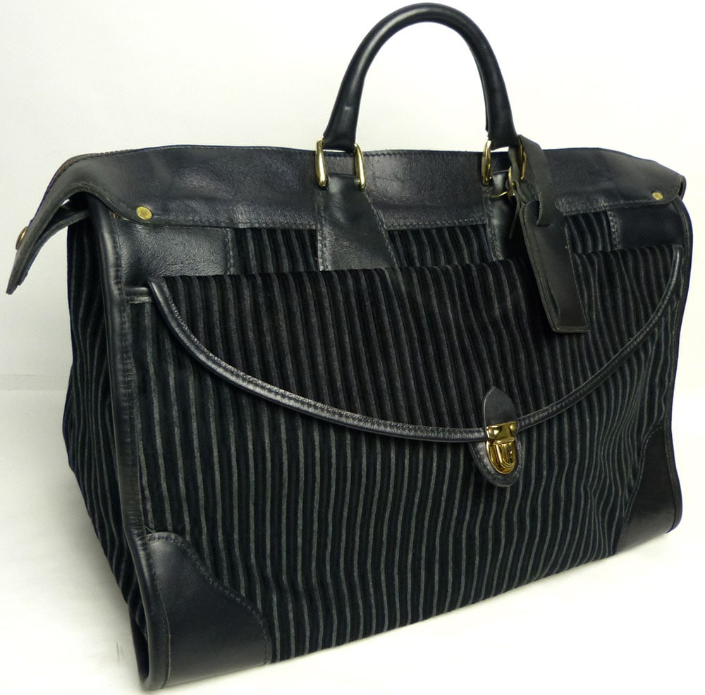 1970-80s USA製 FRENCH レザー×ベルベット ボストンバッグ / トラベルバッグ (TALONジップ)(鍵付き)【...