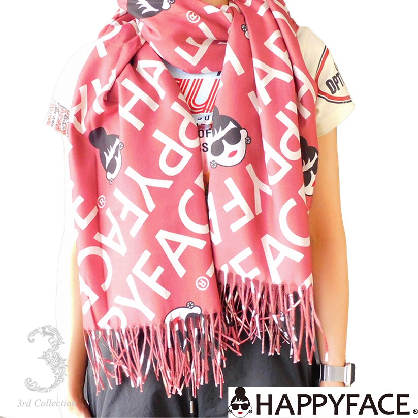 HAPPY FACE ハッピーフェイス レディエマ ロゴストール 大判 レディース 秋冬 防寒 おしゃれ ギフト