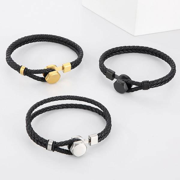 メンズ 六角モチーフ 編み込み レザー ブレスレット バングル 腕輪 留め具 手首 ジュエリー アクセサリー 贈り物 ギフト プレ...