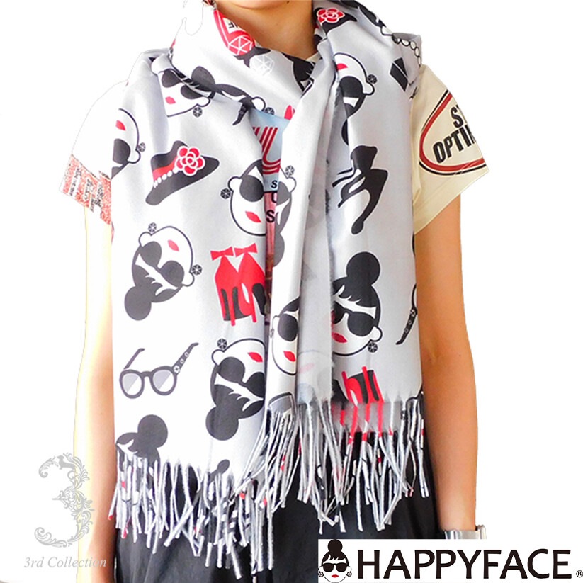 HAPPY FACE ハッピーフェイス レディエマ 小物柄ストール 大判 レディース 秋冬 トレンド ギフト
