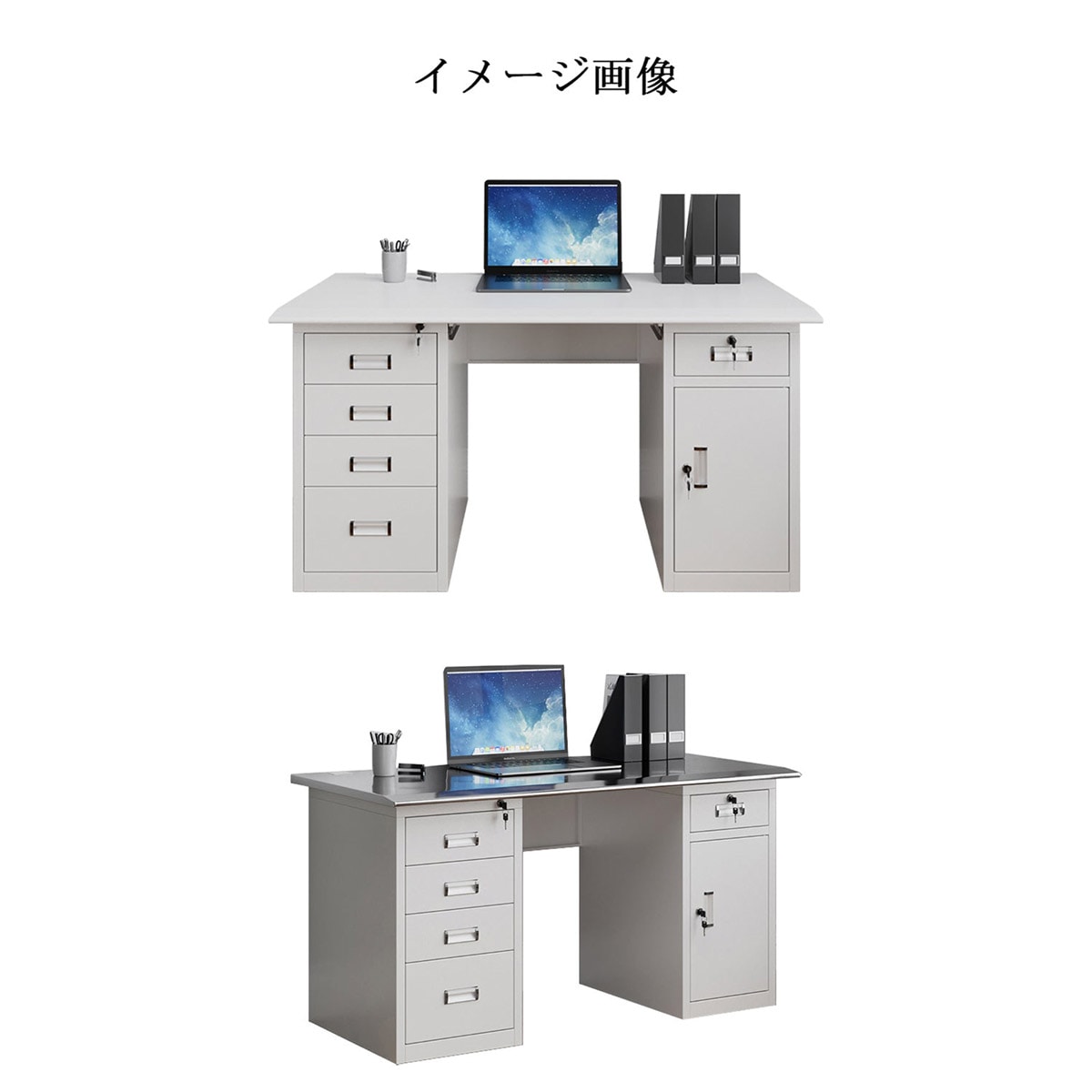 オフィスデスク ワークデスク パソコンデスク 学習机 事務用デスク 粉体塗装 スチール 鍵付き引き出し 大容量収納 ホワイト