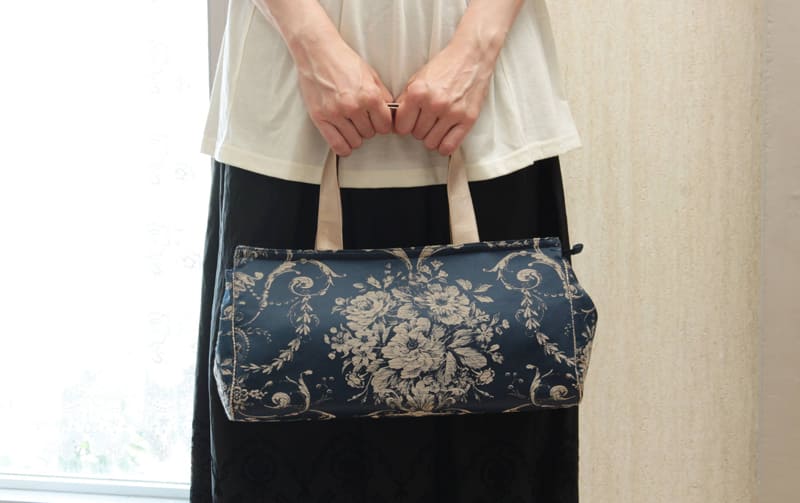 花柄プリント 横型バッグ 約35×18×13cm [Belle Heure]