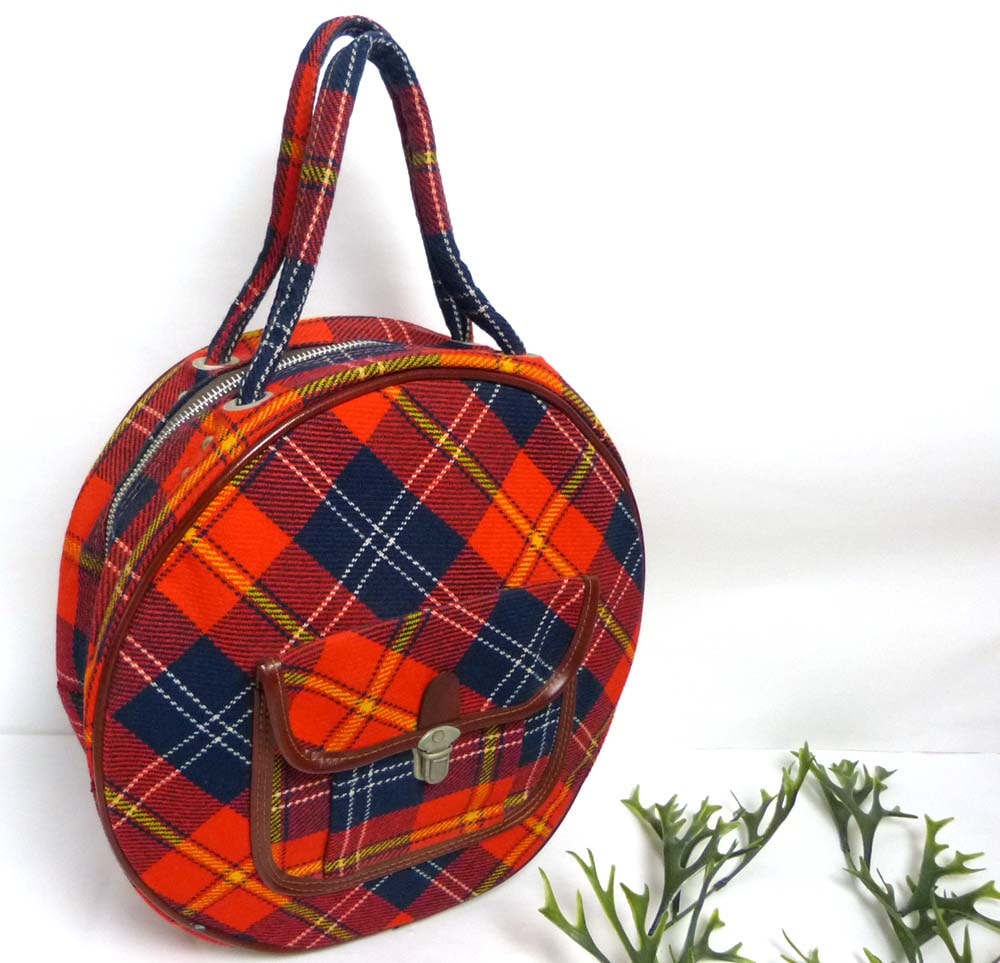 1970-80s タータンチェック ラウンド型 ハンドバッグ(THREE STARジッパー)【中古】
