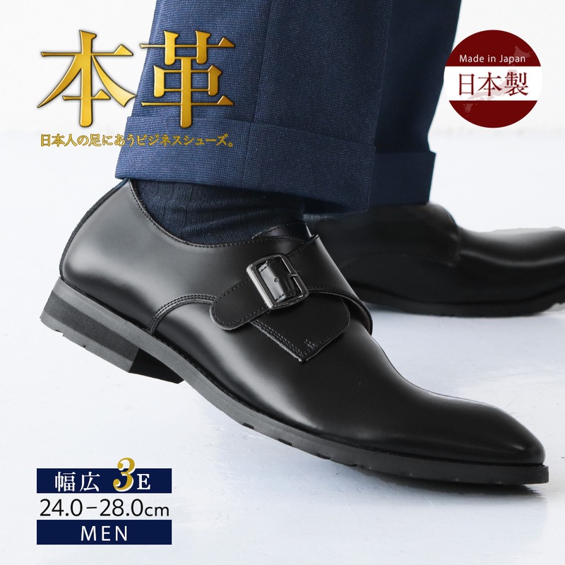ビジネスシューズ 本革 メンズ 日本製 レザー モンクストラップ 本革 幅広 3e 履きやすい 痛くない 疲れにくい 革靴 天然皮...
