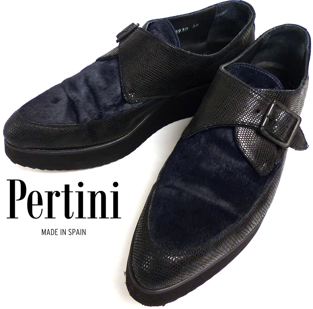 スペイン製 Pertini / ペルティ二 /バイカラー ハラコ レースアップシューズ / ドレスシューズ 39(24.5cm相当...
