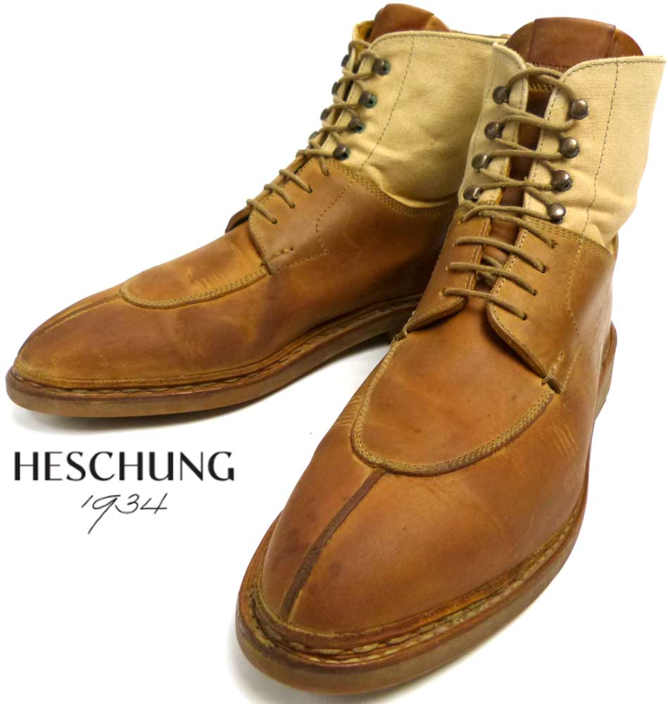 【希少】エシュン HESCHUNG レザー×キャンバス Uチップブーツ 6 1/2(25cm相当)(メンズ)【中古】【送料無料】