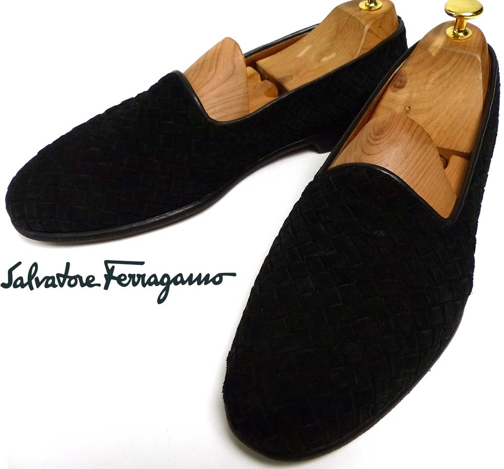 イタリア製 Salvatore Ferragamo / サルヴァトーレフェラガモ 編み込み スエードローファー 8D(26cm相当...