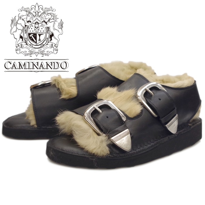 CAMINANDO カミナンド 19115 TWO STRAP FUR SHOES メンズ ファーサンダル ストラップ リアルファ...