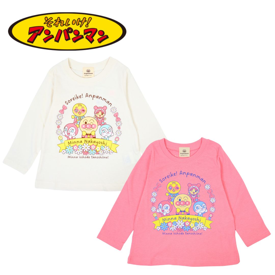 アンパンマン アンパン仲間たち 長袖Tシャツ ピンク/アイボリー 90cm/95cm/100cm ベビー服 子供服 長袖