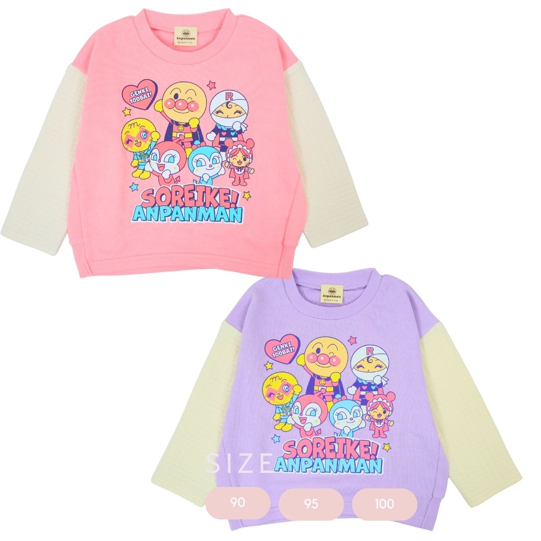 BANDAI アンパンマン ガール キルト袖 スウェットシャツ 長袖 トレーナー 裏毛 女の子 90-100cm EA3629