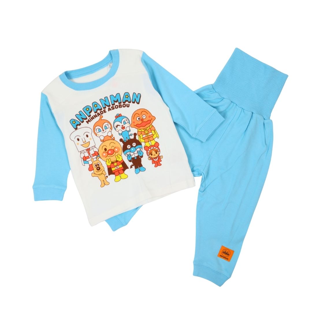 アンパンマン あったかフリース 総柄 パジャマ サックス 前開き 男児 ベビー服 長袖