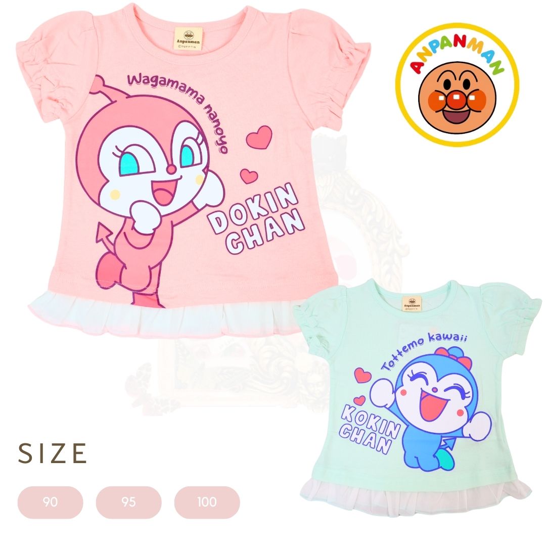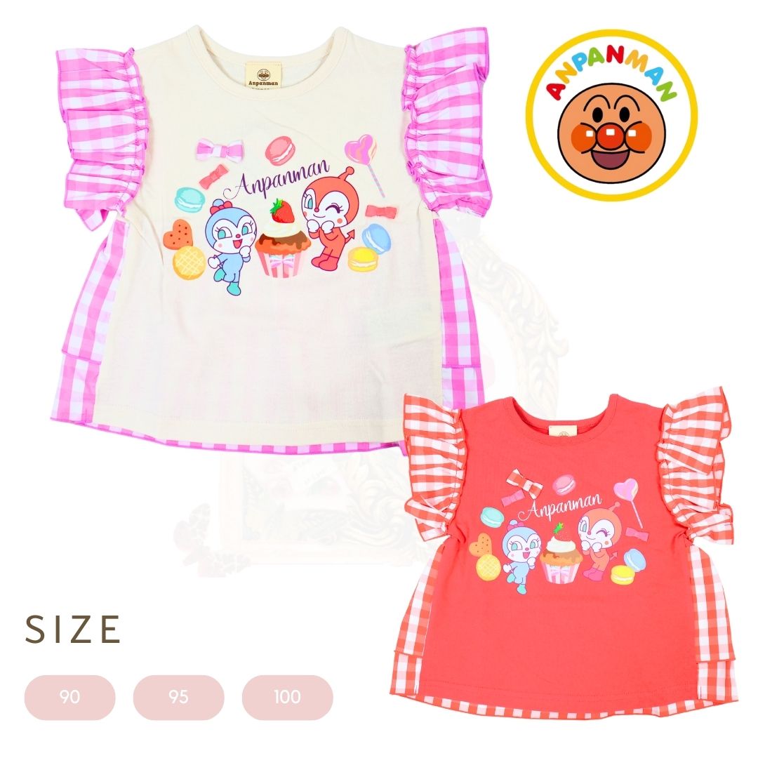アンパンマン 天竺 ギンガムチェック 肩フリル 半袖Tシャツ Anpanman