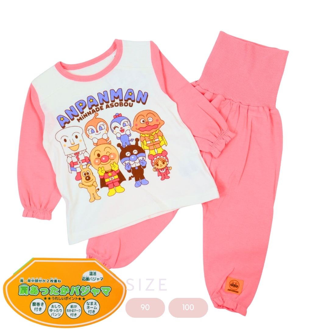 【本体 綿100%】 2025年 秋冬 アンパンマン スムス・ニットキルト 肩あったか 腹巻付き 女の子 長袖パジャマ Anpan...