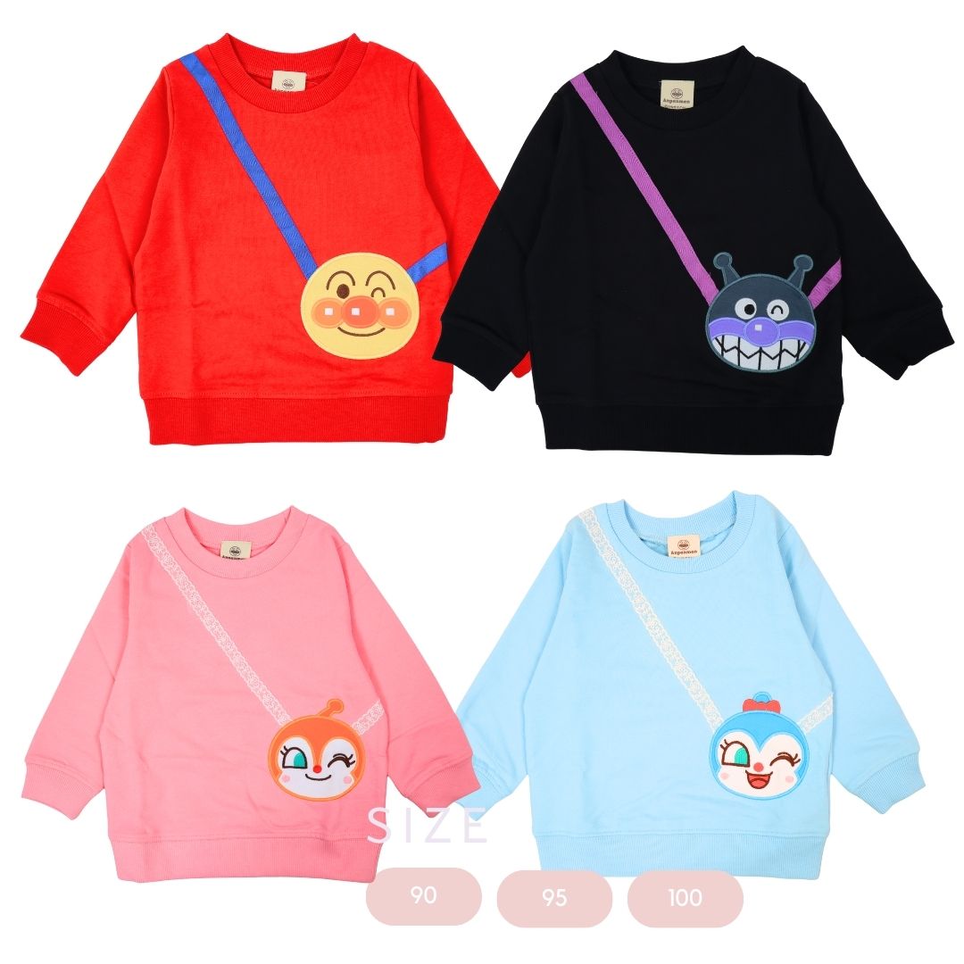 【本体綿100%】アンパンマン ベビー 裏毛 スウェットシャツ 長袖 ポシェット風 4キャラデザイン 2025年秋冬