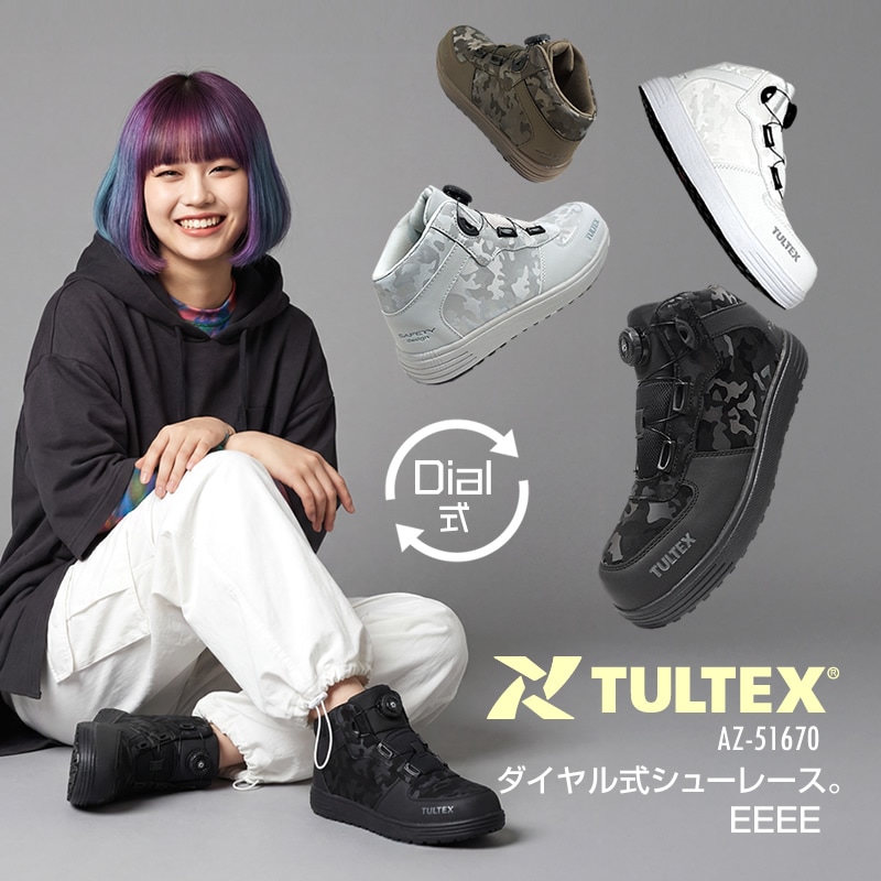 送料無料 安全靴 スニーカー TULTEX タルテックス ダイヤル式 軽量 耐滑ソール クッション性 樹脂先芯 4E ワイド幅 ミ...