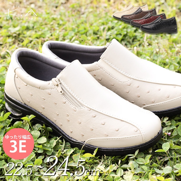 コンフォートシューズ 超軽量 レディース エアソール サイドファスナー エアークッション カジュアルシューズ 婦人靴 スリッポン ...