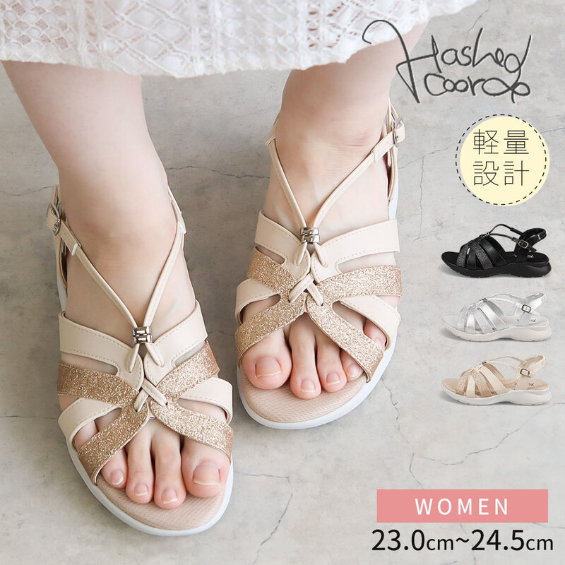 サンダル レディース 疲れない おしゃれ ストラップ 軽量 痛くない 履きやすい カジュアル 黒 ブラック ベージュ シルバー ...