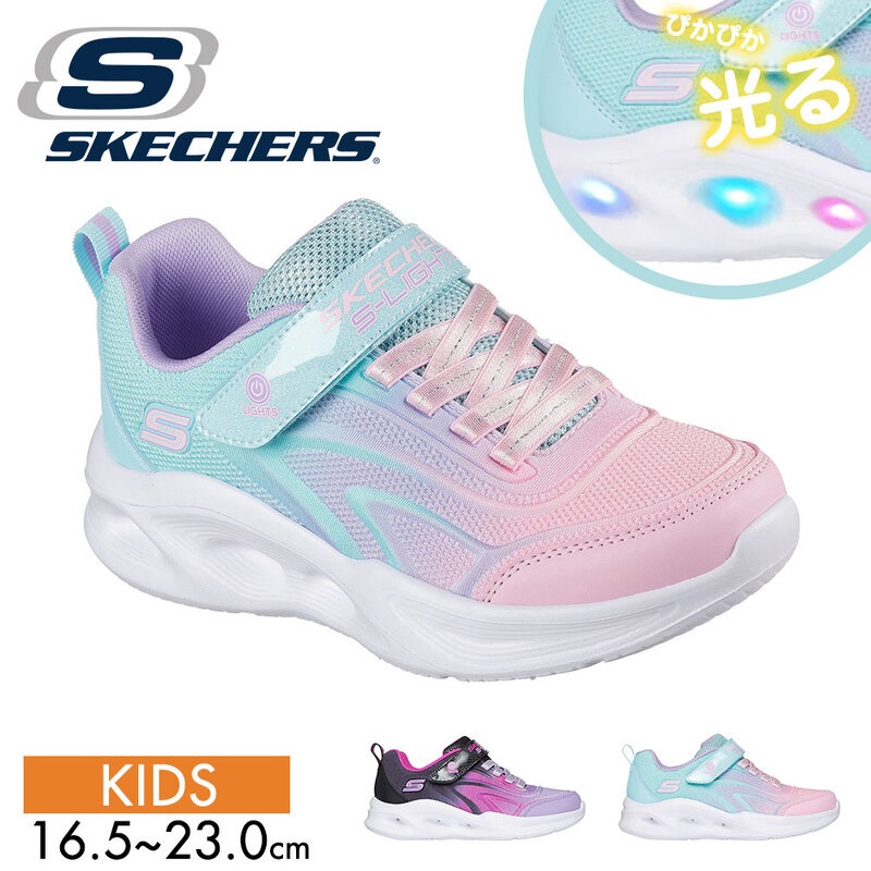 スケッチャーズ ソラ スニーカー キッズ ローカット 子供靴 LEDライト付き 光る スイッチ付き マジックテープ ジュニア シュ...