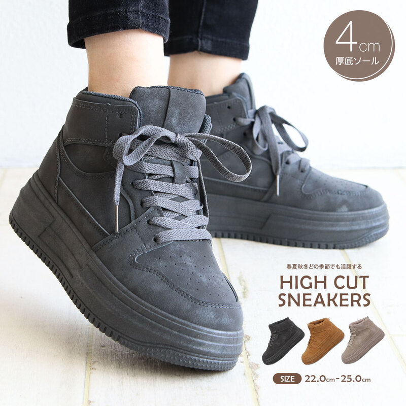 ハイカットスニーカー 厚底 レディース スニーカー 厚底スニーカー ジュニア シンプル おしゃれ カジュアル 靴 グレー キャメ...
