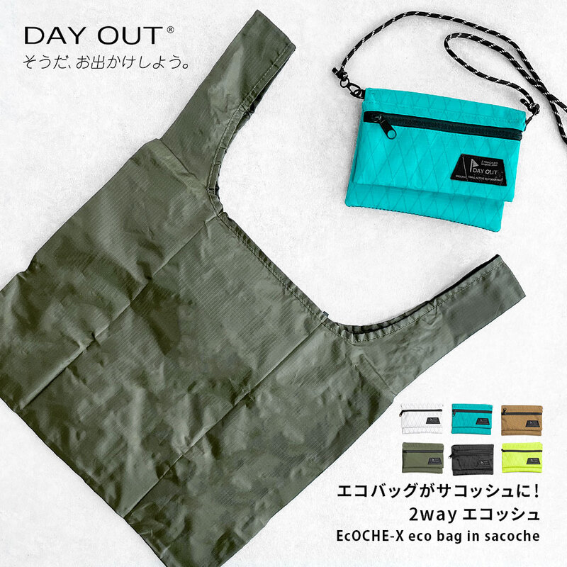 サコッシュ エコバッグ 2way ショルダーバッグ ストラップコード 黒 DAY OUT デイアウト EcOCHE-X エコッシュ...