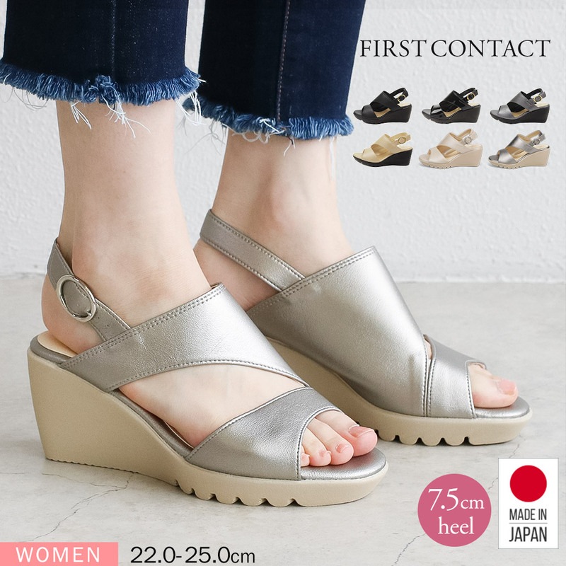サンダル レディース 厚底 ストラップサンダル 7cmヒール ウェッジソール ブラック ベージュ シルバー 日本製 ファーストコン...