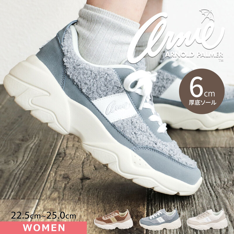 アーノルドパーマー スニーカー 厚底 ローカット レディース ボア ブラウン グレー クリーム ベージュ 0964 Arnold ...