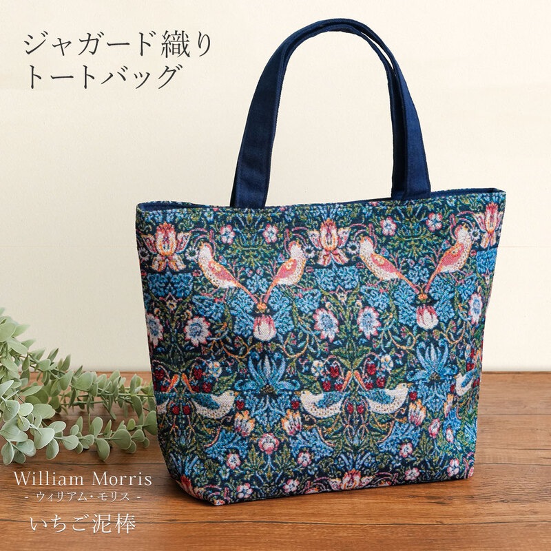 ウィリアムモリス いちご泥棒 レディース 軽量 小さめ ハンドバッグ モダンデザイン クラシカル エレガント ジャガード織り手提げ...