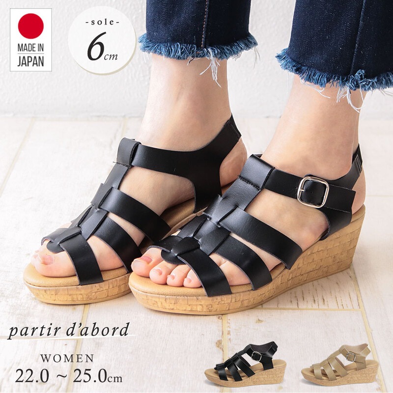サンダル レディース ウェッジソール バックストラップ グルカサンダル ストラップサンダル 美脚 黒 ベージュ 日本製 パルティエ...