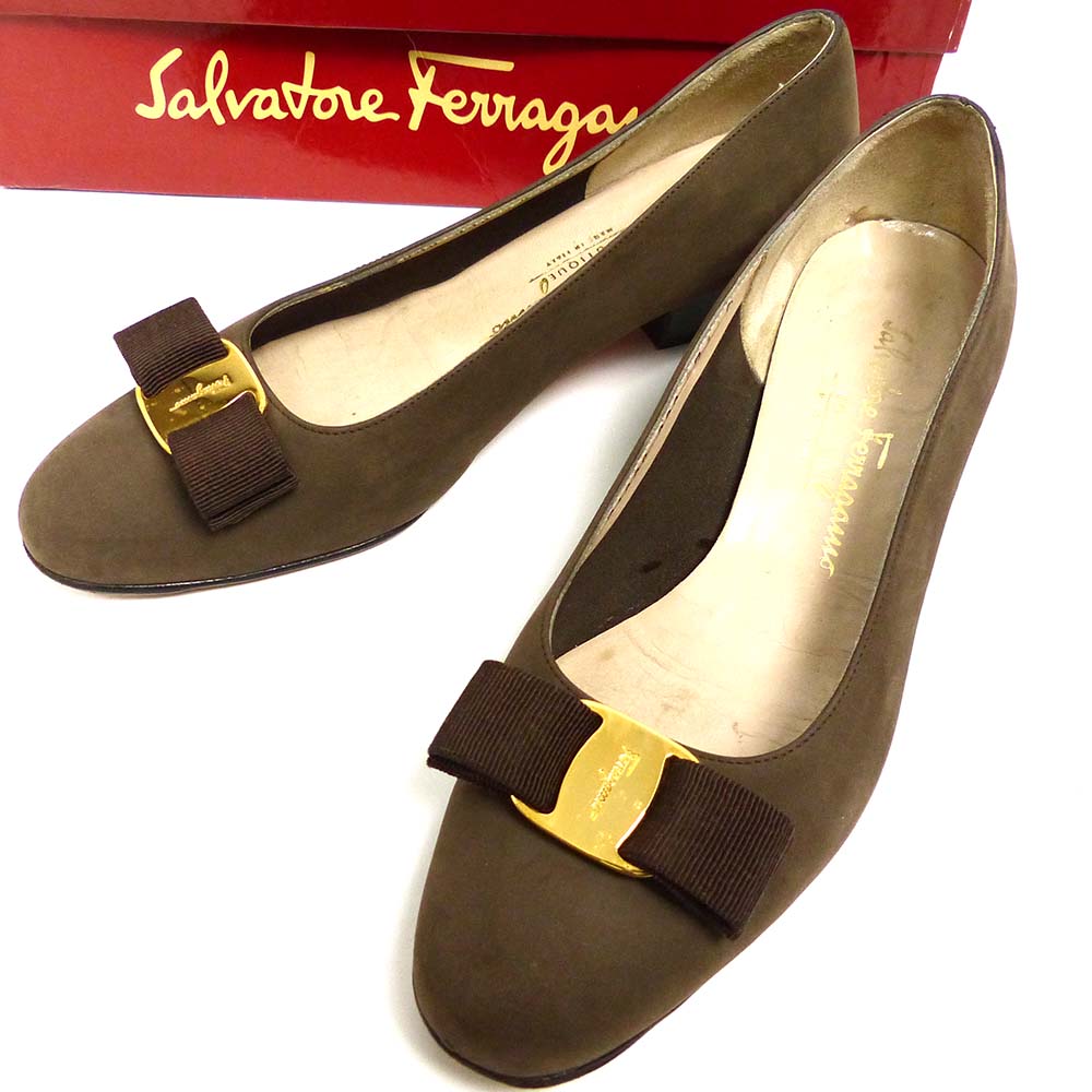 イタリア製 サルヴァトーレ フェラガモ / Salvatore Ferragamo ヴァラリボンスエードパンプス 7C(24cm相...