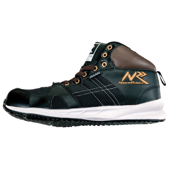 日進ゴム Hyper V 先芯入りプロスニーカー(紐・ミドルカット) #906MG ブラック【取り寄せ商品・即納不可】