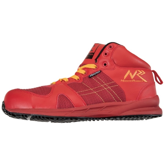 日進ゴム Hyper V 先芯入りプロスニーカー(紐・ミドルカット) #906MG レッド【取り寄せ商品・即納不可】