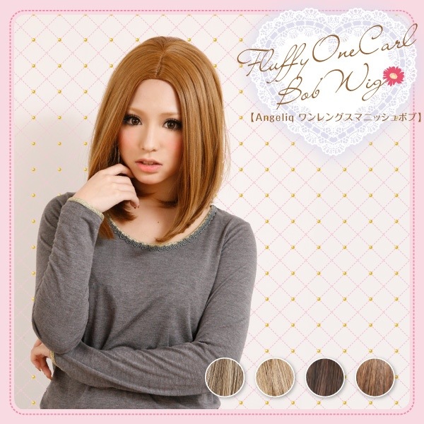 フルウィッグ ワンレングス・マニッシュ・ボブ 4色バリエーション 耐熱ファイバー 専用ウィッグネット付き【Angeliqueアンジ...
