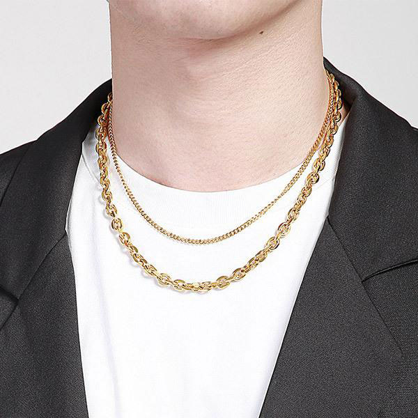 メンズ 2層チェーンネックレス ステンレス マンテルタイプ 棒状 留め具 首元 ジュエリー アクセサリー ギフト プレゼント 着脱...