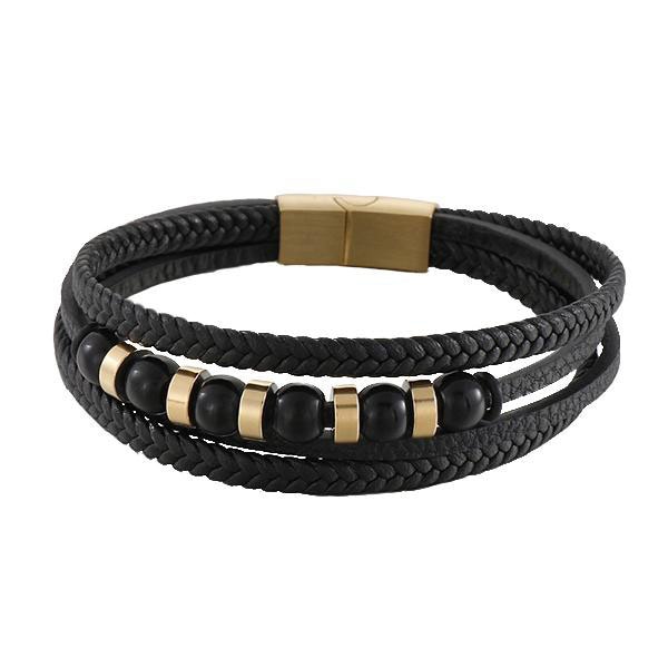 メンズ 編み込み レザー ブレスレット バングル 腕輪 ビーズデザイン 金属製 留め具 ジュエリー アクセサリー ギフト プレゼン...