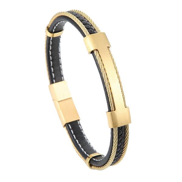 メンズ 編み込みレザー ワイヤー ブレスレット バングル 腕輪 ステンレス 金具 ディテール アクセサリー ギフト プレゼント 装...