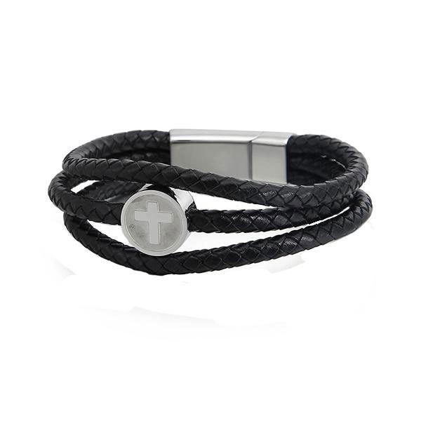 メンズ クロスモチーフ 編み込み レザー ブレスレット バングル 留め具 ジュエリー アクセサリー ギフト プレゼント 着脱 シン...