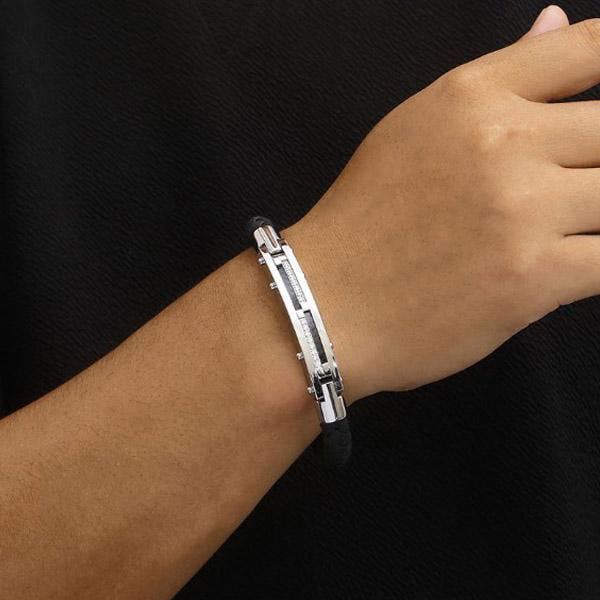 メンズ レザー ブレスレット バングル 腕輪 ステンレス 手首 ジュエリー アクセサリー ギフト プレゼント スマート 高級感 シ...