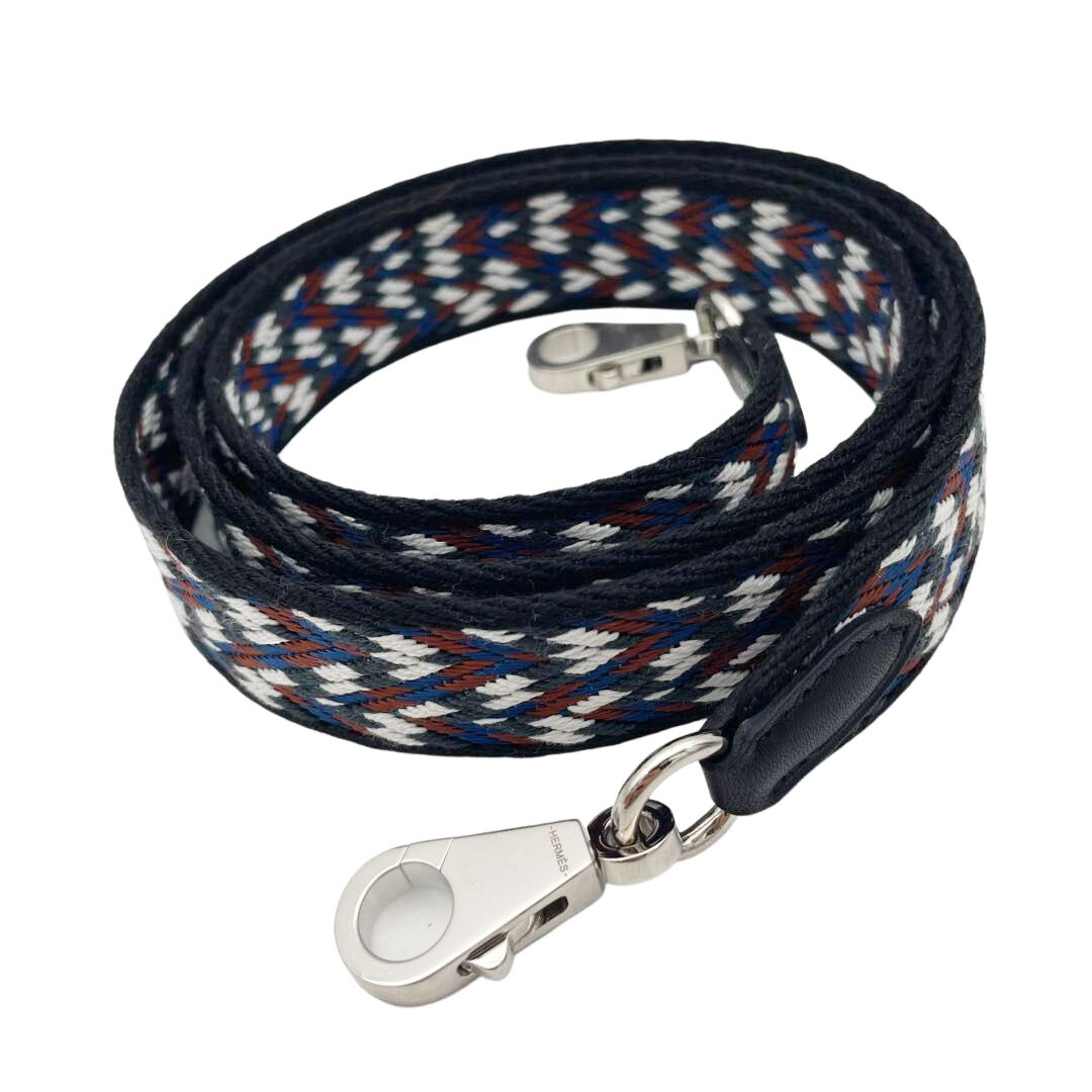 HERMES エルメス バンドリエール サングル ジグザグ 25mm ショルダーストラップ ブラック ホワイト ディープブルー シ...