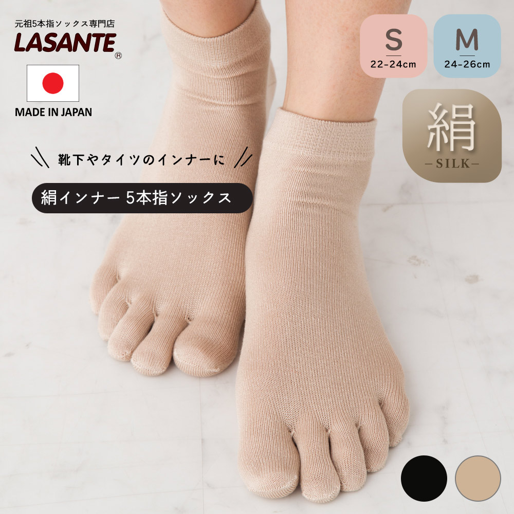 5本指ソックス シルク(絹)インナー重ね履き用S(22-24cm)・M(24-26cm)【20172】