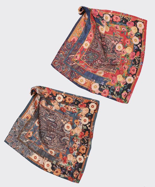 箔ライン チロリアン柄 スクエア ストール SILVER LINE TYROLEAN SQUARE STOLE