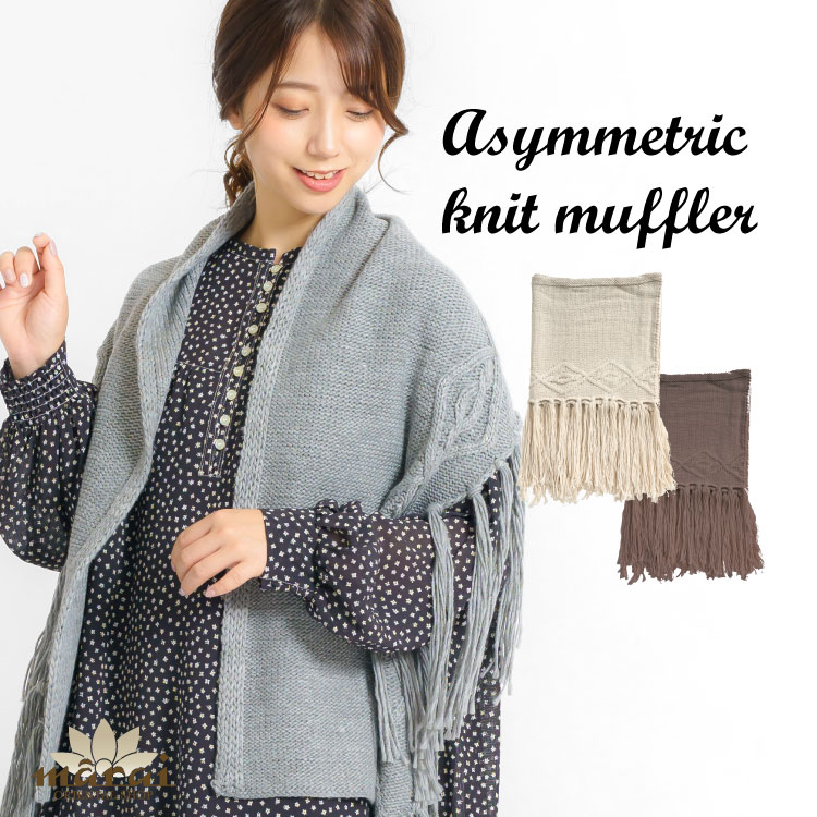【期間限定50%OFF】マフラー レディース 個性際立つ。片フリンジニットマフラー ストール ショール ガウン あったか 羽織り ...