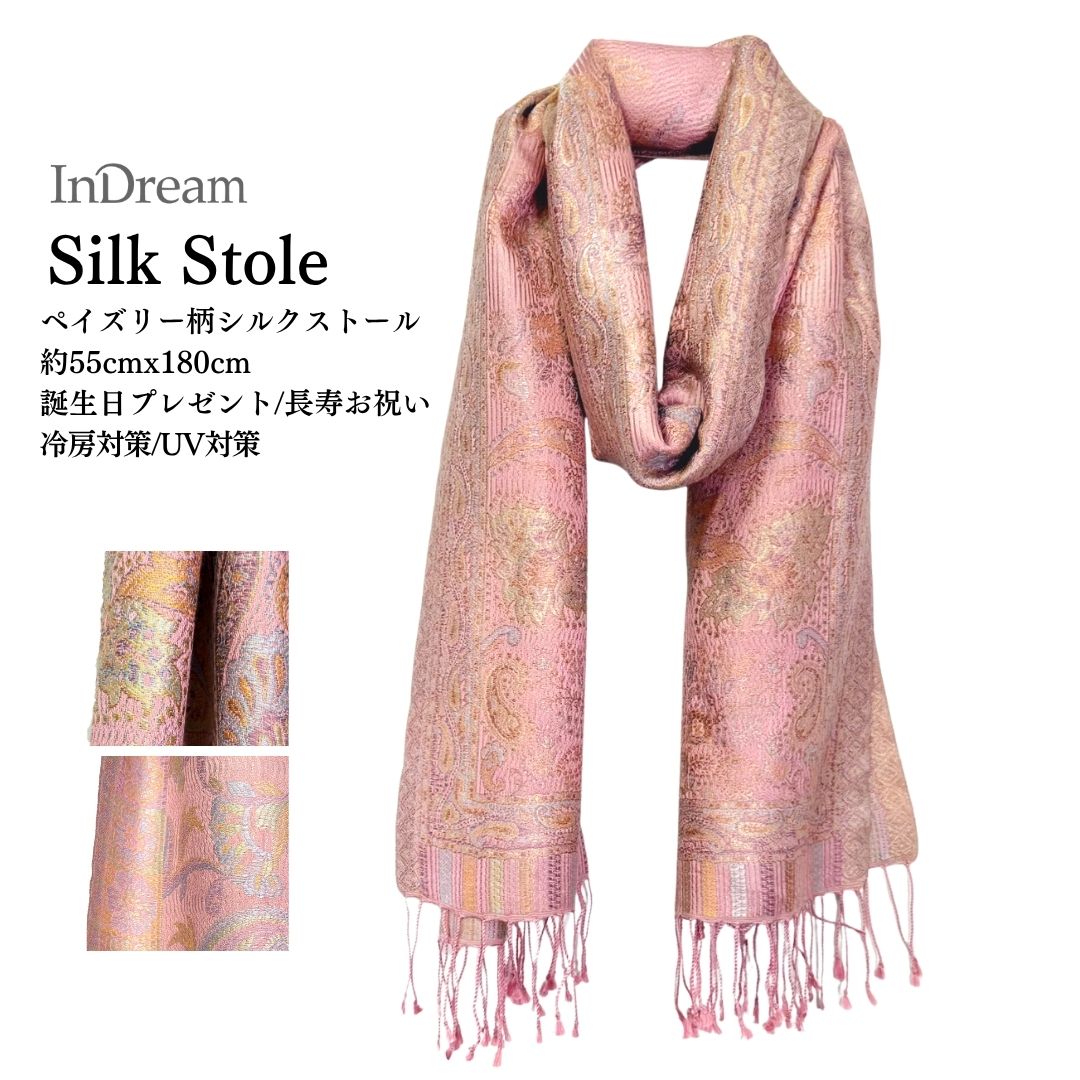 InDream ペイズリー柄 シルク ストール 大判[70cmx200cm]ピンク 春 秋 冬 誕生日 プレゼント クリスマス ギ...