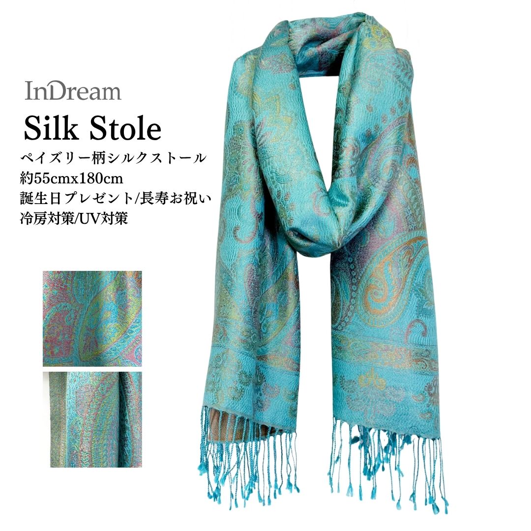 InDream ペイズリー柄 シルク ストール 大判 [70cmx200cm] ブルー ピンク パステル 春 秋 冬 誕生日 プレ...