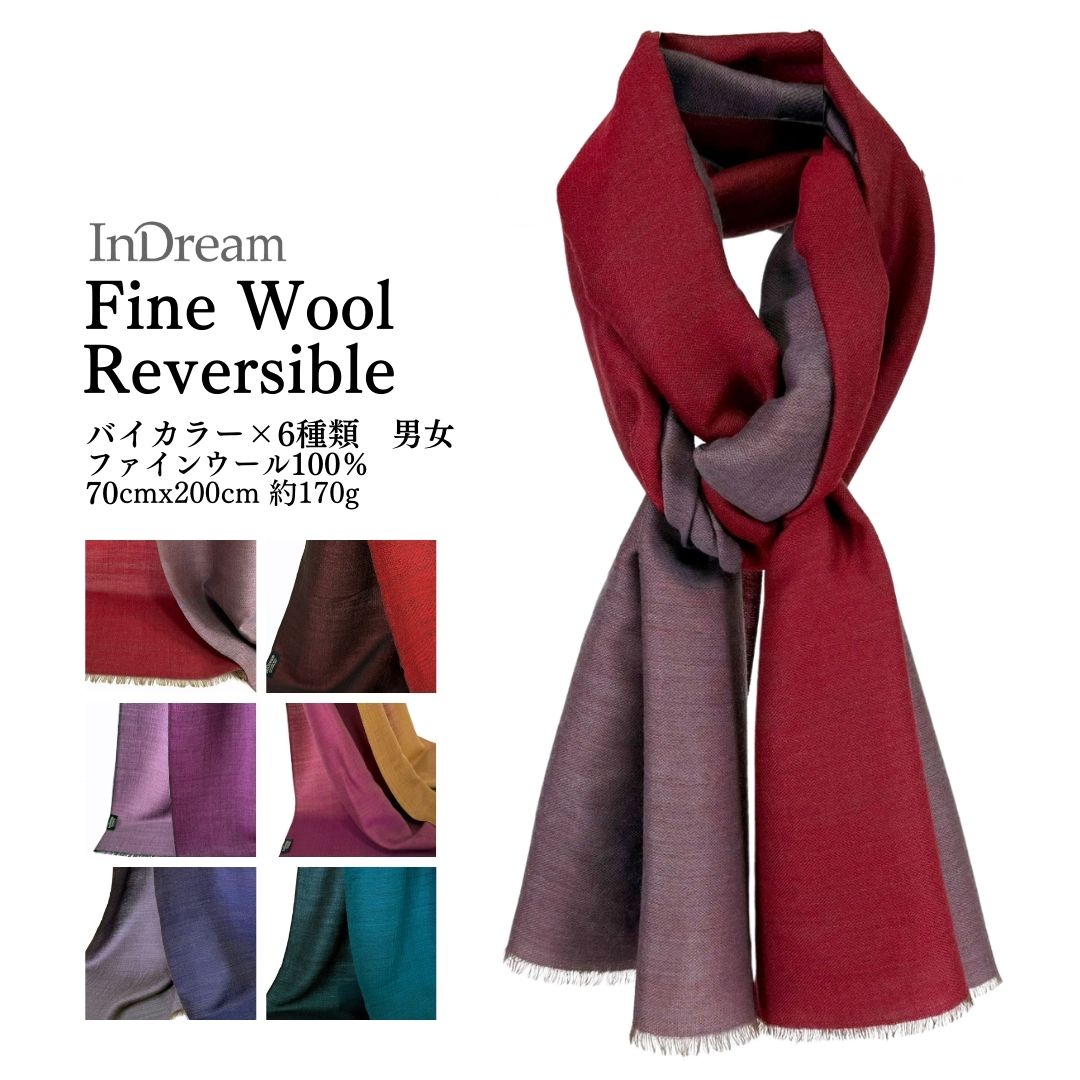 InDream NEW ファインウールリバーシブル ストール 大判 [約70cmx200cm]6パターン 無地 ニュアンスカラー ...