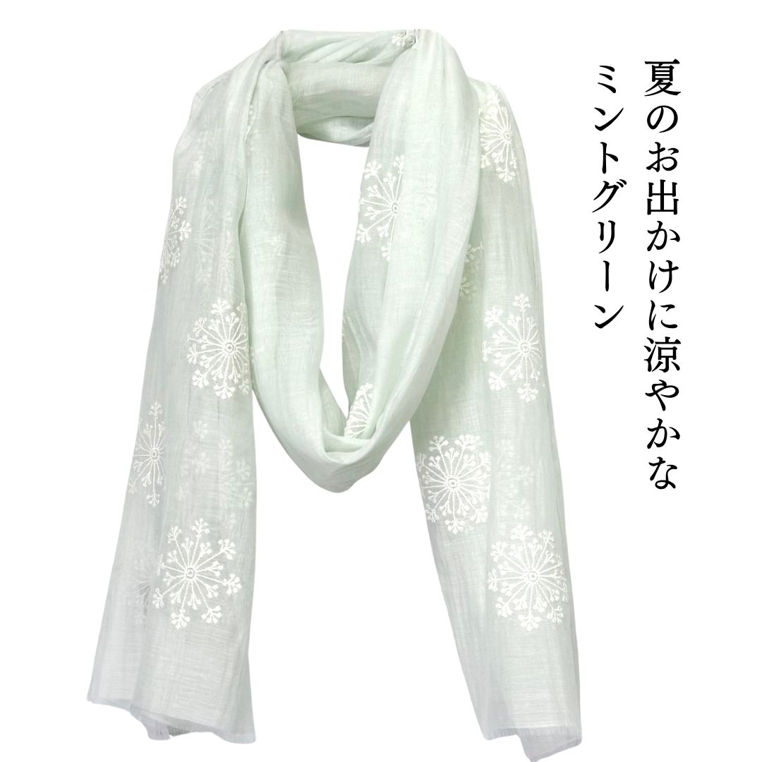 InDream シルクコットン刺繍ストール ミントグリーン 結婚式 ストール 大判 パーティー 春 夏 秋 誕生日 プレゼント ク...