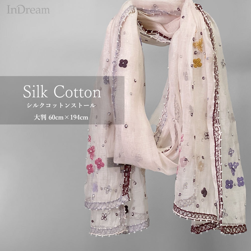 InDream シルク コットン ストール 薄手 大判 春夏 古希 お祝い 結婚式 パーティー 30代 40代 50代 60代