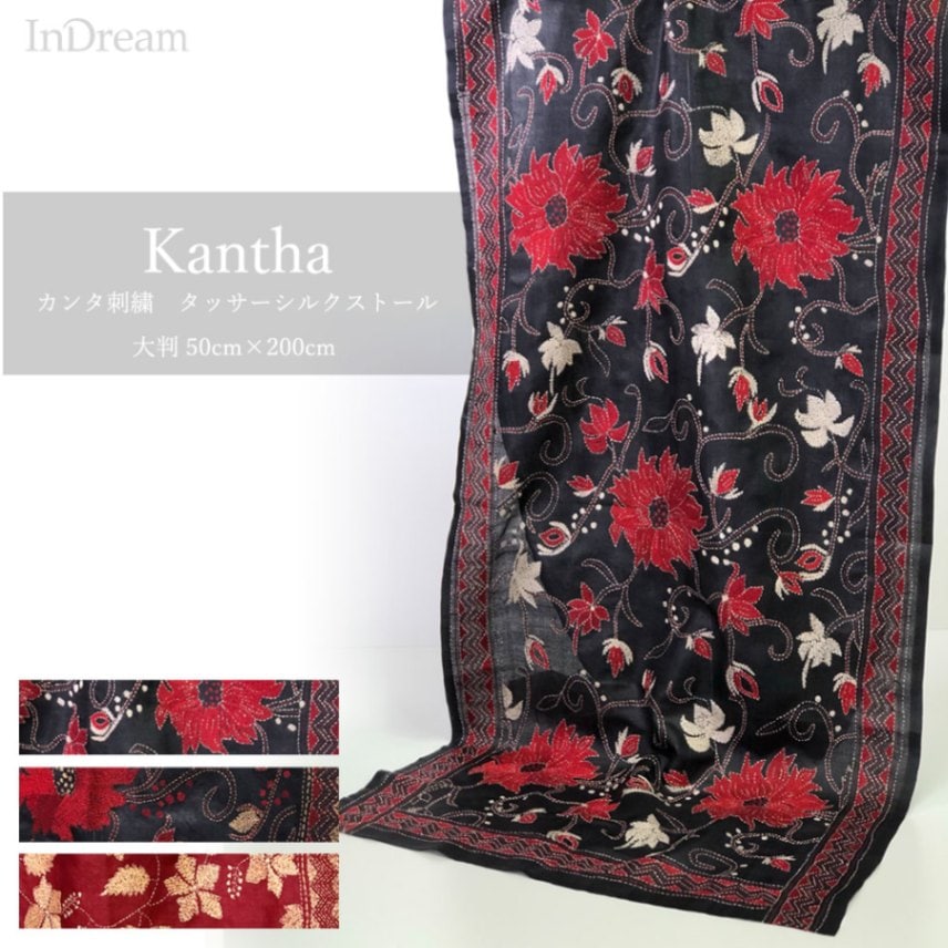 InDream カンタ 刺繍 ストール 50×200cm インド 刺し子 インテリア 3デザイン シルク インテリア クリスマス ...