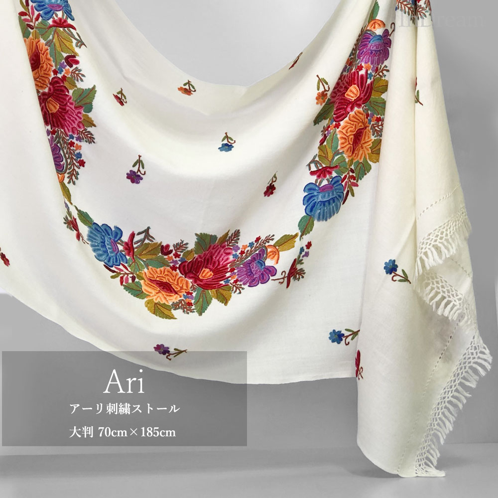 InDream アーリ刺繍ストール 白 ホワイト 大判 クリスマス ギフト おしゃれ 誕生日 プレゼント 着物ショール レディース...